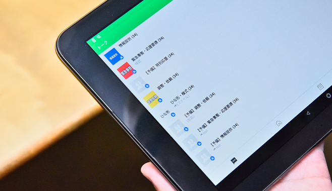 LINE WORKSアプリをインストールしたタブレット端末を各消防本部の指令室等に1台ずつ配置し、メッセージがあると光とアラームを発する機器を接続して着信に確実に気づけるようにしました。大規模災害時にいち早く被災地を支援する政令市の消防局には部隊が携行するための端末も配布し、災害現場の動画や画像を撮影して発信できるようにしています。