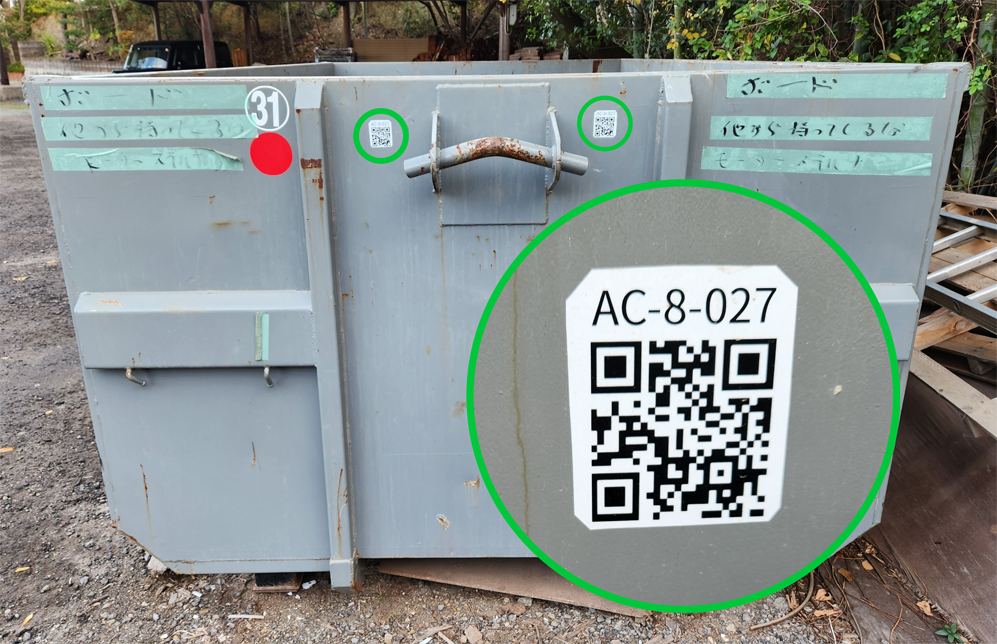 そこで、各産廃コンテナにQRコードを貼り付け、現場にいるドライバーがWOFFアプリでQRコードを読み込み、スマホのGPSの位置情報を登録することで、コンテナの所在地をkintone上で管理できる仕組みを構築しました。これにより、産廃コンテナの所在地を確認する手間が大幅に削減できると期待しています。