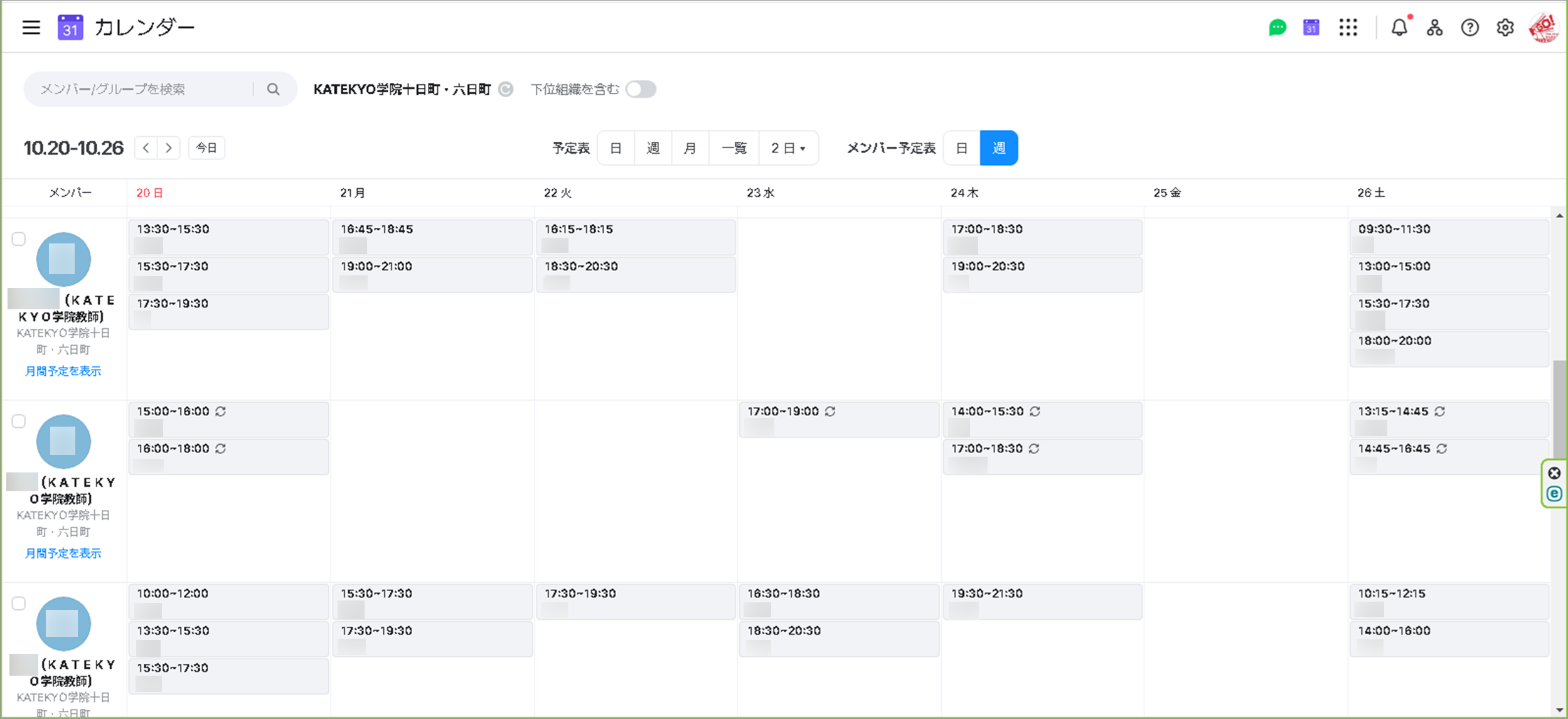 【カレンダー】各教員の指導スケジュールを教室単位で共有