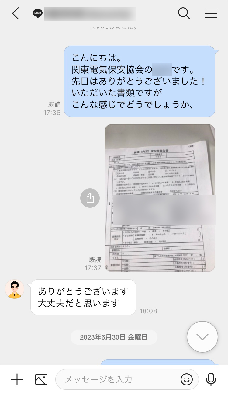 個人情報保護の観点から、内定者のグループを作成するのではなく、私どもと内定者の1対1のトークルームでやり取りをしています。提出された書類に誤記があった場合に、その箇所の写真を添付して本人に確認を取るといった作業が、これまでの連絡手段だったメールと比べて格段にスピードアップしました。LINEならフランクな雰囲気でやり取りできるので、学生の側も私たちに聞きたいことを気軽に問い合わせてくれます。既読がつくのも便利で、重要な通知を送ったあと未読のままの学生だけに電話をかけるといった対応が可能になりました。こうしたきめ細かなフォローによって、内定承諾率が高まることを期待しています。