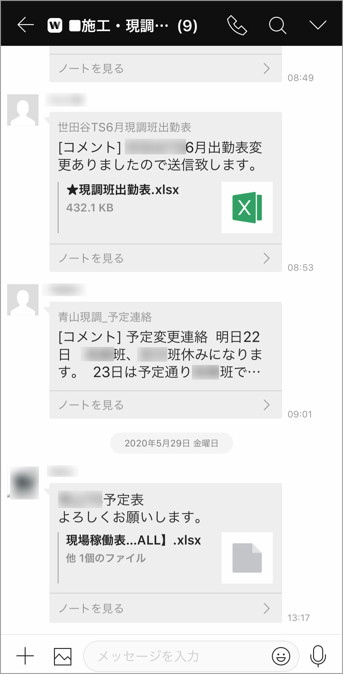 電気工事や通信インフラ工事には多くの協力会社との密な連携が必要です。工事の指示出し、指示内容変更の伝達、現場の状況確認など、作業者と常に意思疎通をしなければならないので、複数の案件を管理する当社の担当者は、一日中電話に追われているという感じでした。また、現場ではしばしば予想外のトラブルが発生しますが、電話で説明を受けても細かな状況がよくわからず、管理者がわざわざ現場へ確認しに行くことも少なくありませんでした。付き合いの深い一部の作業者との間ではLINEを使っていましたが、すべての協力会社の方に個人LINEの業務利用を求めることはできません。