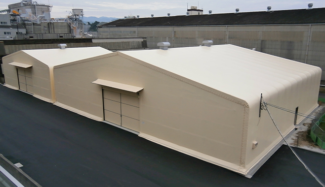 当社はテント、シート、カバーなどを製造・販売・施工(設営)し、イベント向けのレンタルも行っています。製品の大半が受注生産で、新広島市民球場(マツダスタジアム)の雨天時に内野を保護する赤いグラウンドシートも当社が製作したものです。広島県に本社と複数の工場を持つほか、東京や九州などに拠点があり、北海道から沖縄まで全国をカバーする営業体制を整えています。私は取締役総務部長として、人事・労務・経理業務を管理しています。
