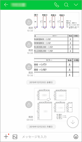 テント等の設計図面や設営現場の写真を送ったり、製品の加工状況の写真を送ってもらったりと、製造担当者との間で画像のやり取りが速やかにできるようになり、リアルタイムな情報共有が可能になりました。電話と違ってトークでやり取りしたメッセージは残るので、聞き違いなどによる誤解が防げるようになったのもメリットです。