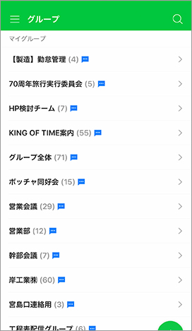 会社組織図に基づくグループのほか、必要に応じてのグループ作成も自由にしているので、社員旅行の実行委員会をはじめとするさまざまなグループが作られています。1対1だけではなく、グループトークも活性化することで、社内全体のコミュニケーションが促進されました。