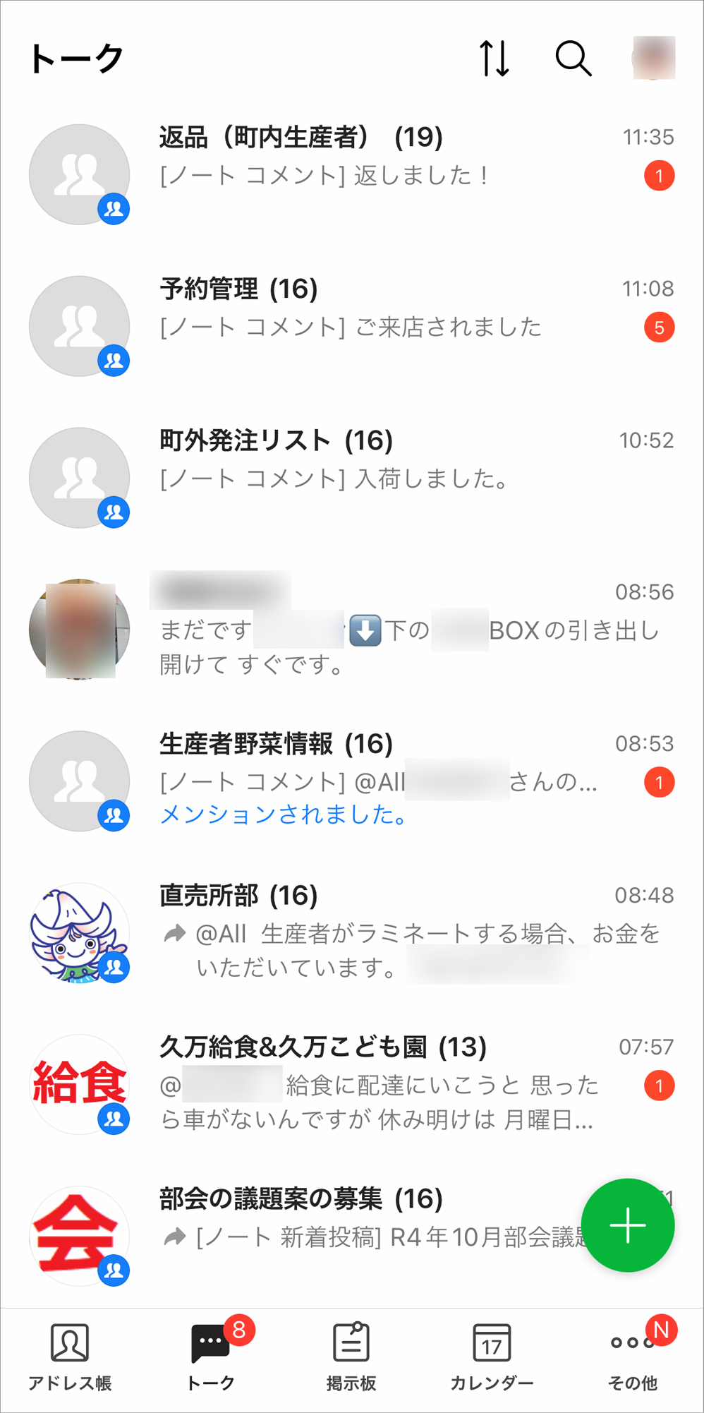 【グループ】目的別に情報が整理。タイムリーな情報交換で直売所の業務の質が向上