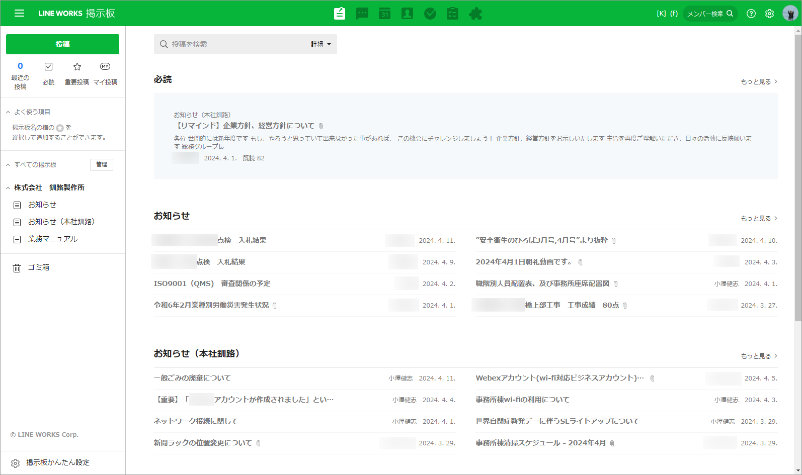 【掲示板】会社からの重要な通達を速やかに周知