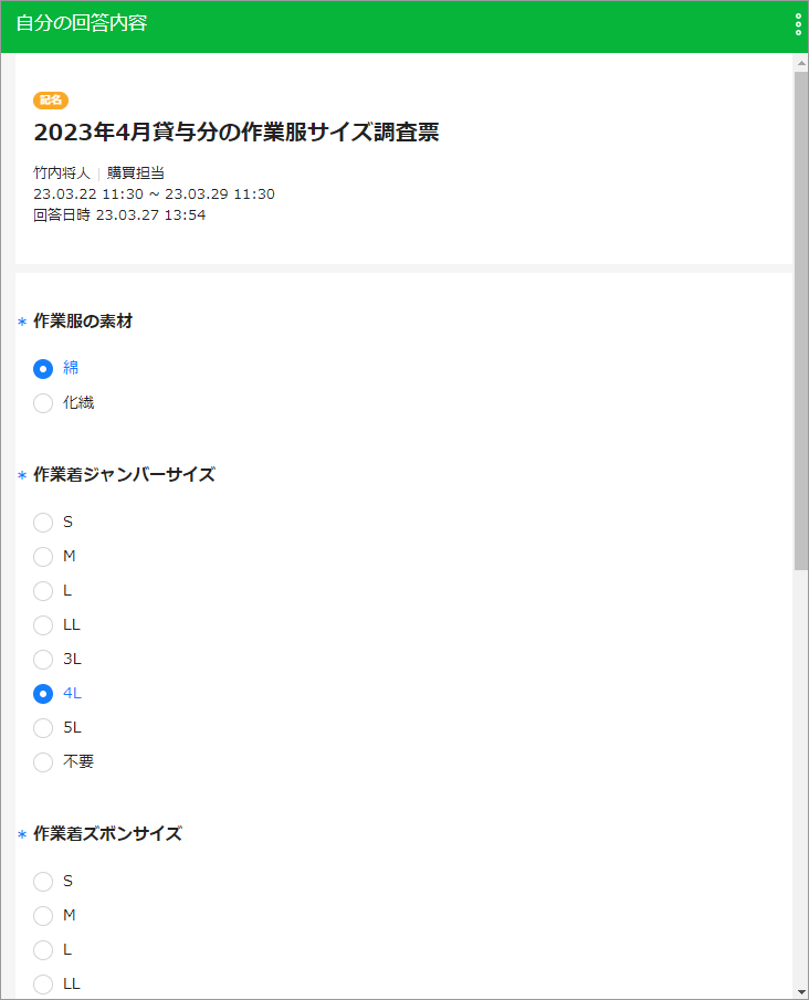 購買業務に携わる私は、現場担当の社員のシーズンごとの作業服を調達する際、紙の申込書を各人に配付してサイズを記入してもらい、それを回収して取りまとめるのに手間がかかっており、こうした業務をどうにかデジタル化できないものかと思っていました。