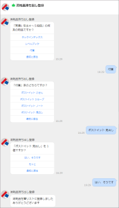 事務用品を持ち出す人は、Jobocoで構築したLINE WORKSのBotで「消耗品持ち出し登録」を実行します。必要な備品と数を登録すると、kintoneのデータベースに反映されます。消耗品ごとに設定した数までストックが減ると、自動的に購買担当者に補充注文を促すトークが発信されます。従来のやり方では、不足分があるかどうか都度在庫を確認して発注する必要がありましたが、この通知により発注タイミングが自動で把握できるようになったため、在庫管理が大幅に効率化されました。