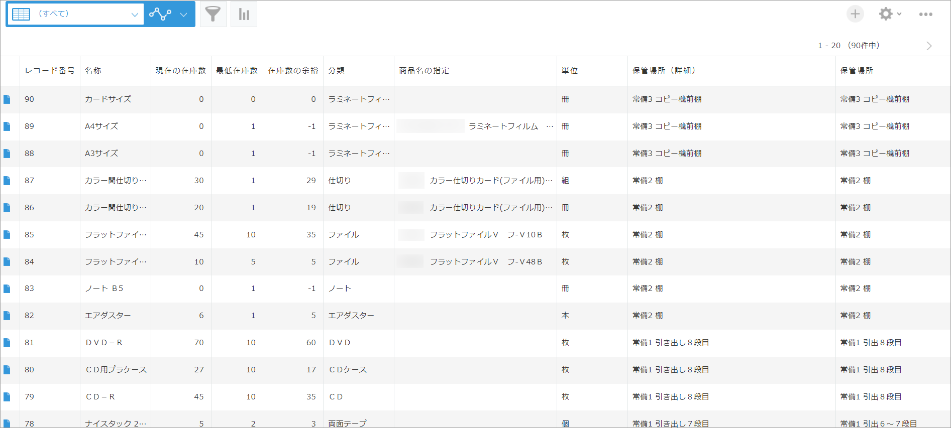 まず着手したのが、事務用品の在庫管理と発注業務の改善です。各部署にあった事務用品のストックを一元化し、その在庫状況をkintoneで作成したデータベースで管理するようにしました。