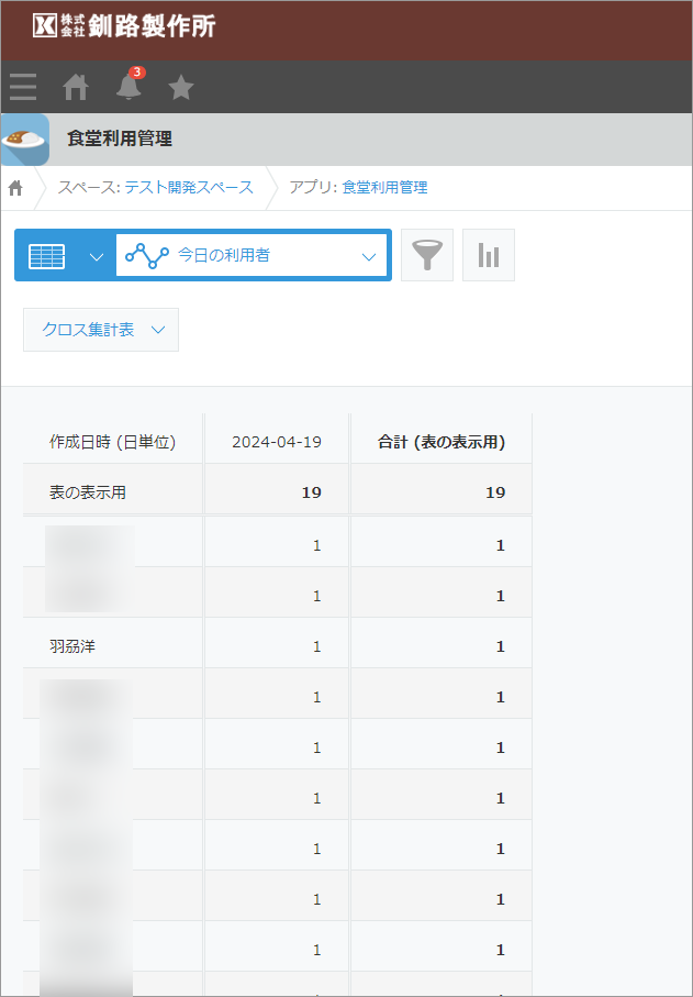 次に社員食堂の食券作成業務の改善に挑みました。紙の食券を作成・配布することをやめ、LINE WORKSのBotからその日の食堂の利用を予約すると、kintoneで作成した管理アプリにその情報が記録されるフローを構築。まる1日かかっていた食券作成の業務がなくなり、さらにペーパーレス化にもつながりました。また代金は給与から差し引きますが、個々の社員の利用回数がkintoneにしっかり記録されるので、紙の食券を数える必要もなくなり、精算作業も以前と比べてかなり楽になりました。