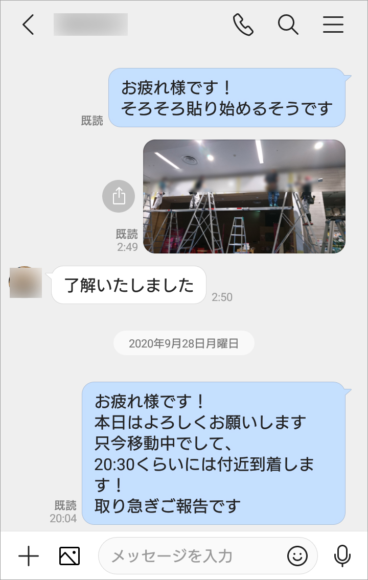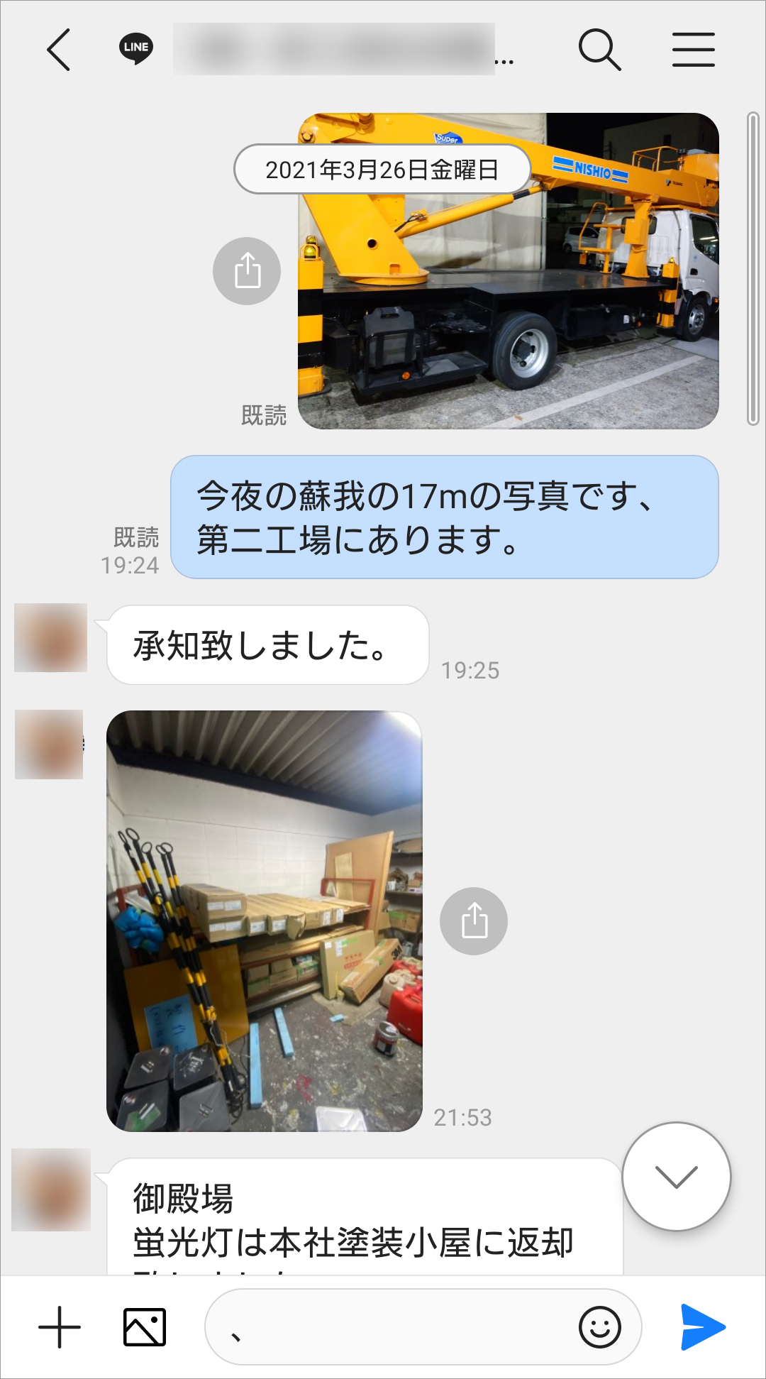 製品の仕上がりを写真や動画などを使い視覚的に確認できるようになり、本社と第2工場の往復に時間を割くことがなくなりました。また看板の取り付け後に施工現場の写真を送ってもらうことで、正確に把握ができるようになっています。単発で仕事に加わる外部スタッフとも外部トーク連携でLINEとやり取りできるので、作業報告や細かな指示がスムーズになりました。