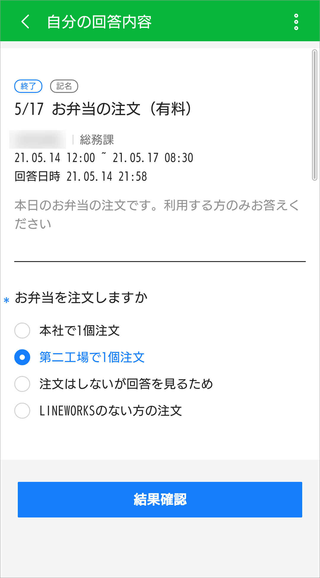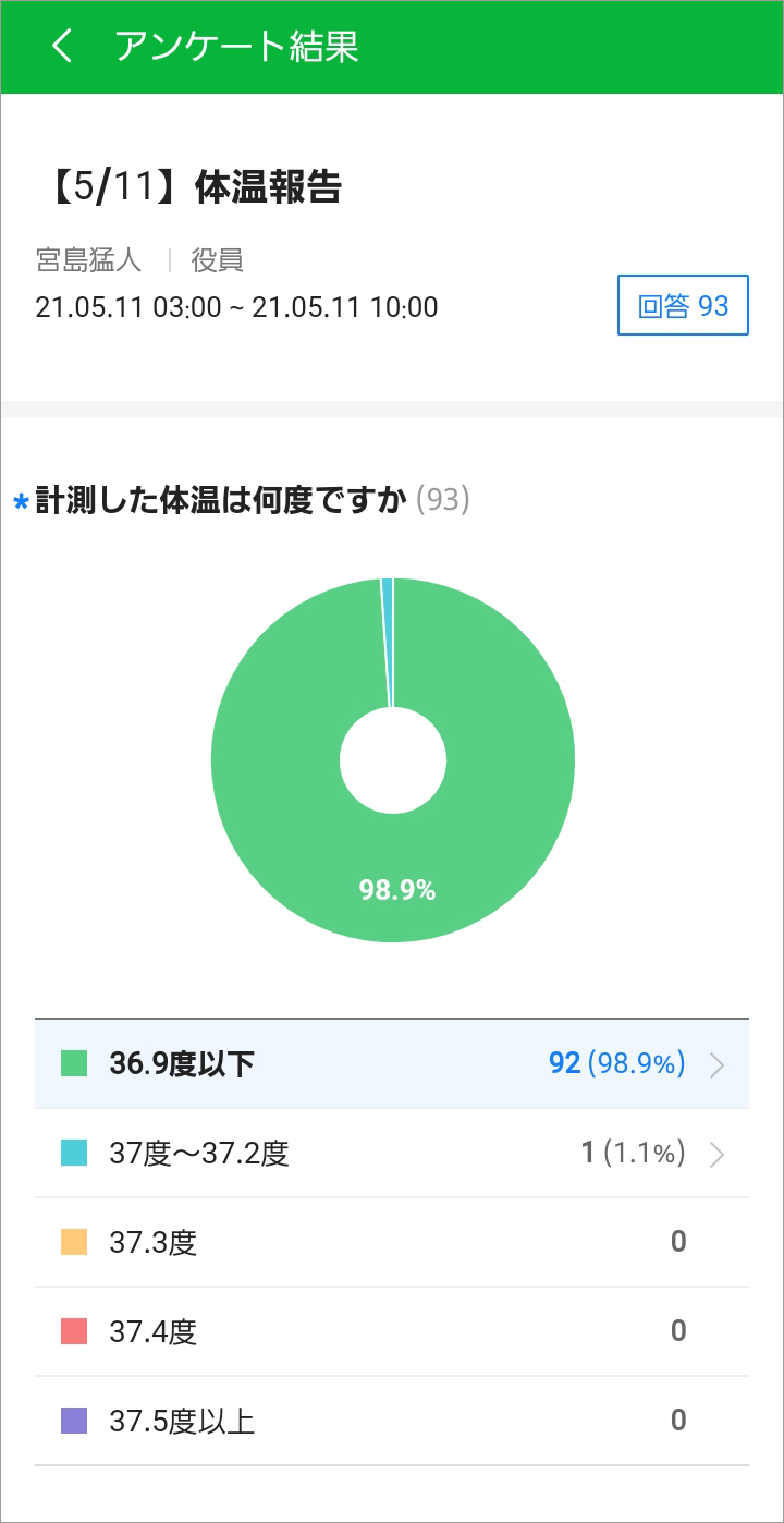 全社員に向けた会社発信の情報は、ホームに掲載して周知しています。また、総務部ではランチの仕出し弁当の注文希望者を、アンケート機能で募っています。さらに、コロナ禍になってからは全社員に毎朝の体温を報告してもらっていますが、その集計もアンケート機能で行い、総務部の業務負担を軽減しています。