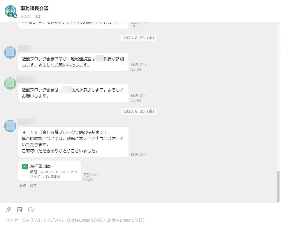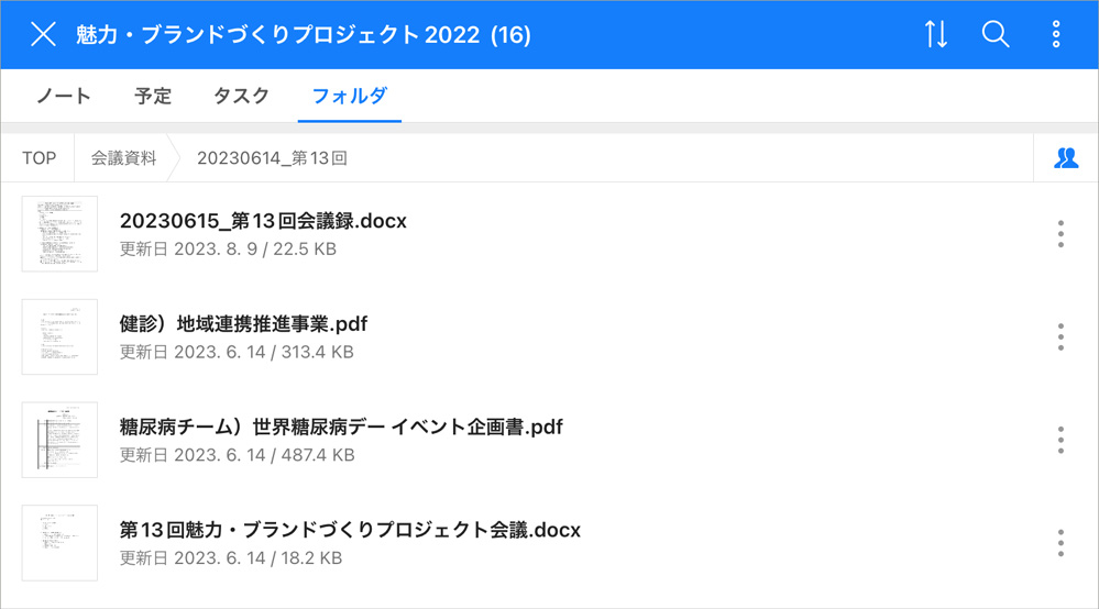 10名程が参加する事務課長会議では、会議の告知から資料の配付、会議中の資料の閲覧、議事録の共有まですべてLINE WORKSで行っており、ペーパーレス化を実現しています。また、事務だけでなく、薬剤部や診療放射線技師、臨床検査技師、福祉相談、栄養科など専門職での会議でも、有効に活用されています。