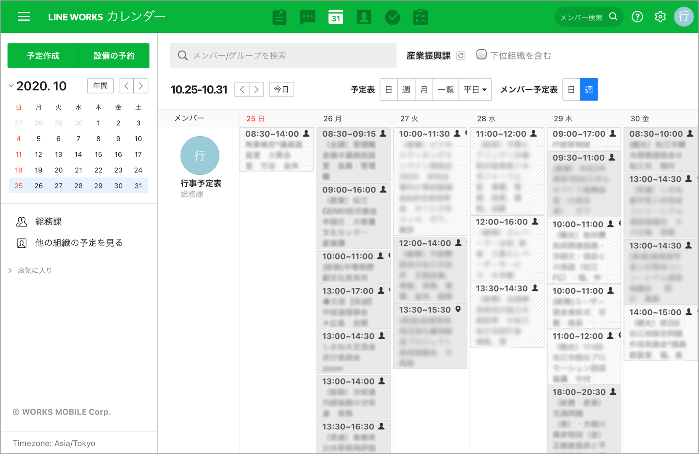 LINE WORKS導入当初は会議室を共有設備に登録して試したのですが、外部から受け付ける会議室の予約は、あとから変更・キャンセルになる場合も少なからずあり、予約した職員とは別の職員がその対応することがあります。職員のアカウントで予定を登録すると、他の職員が修正することができず、結果的に非効率になります。
