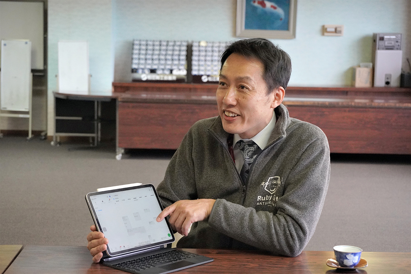 ペーパーレス化を目的に職員へタブレットが導入されたことに伴い、業務の効率化・スリム化を目的とした情報システムの導入が検討されました。そこで商工会議所向けに開発されたシステムを試験的に導入してみたのですが、松江商工会議所の規模にマッチせず、結局導入は見送られました。その後、地元のベンダーさんから勧められたのがLINE WORKSでした。一定の試用期間が過ぎると有料プランに移行するシステムが多い中、LINE WORKSには100名までずっと無料で使えるフリープランがあり、コスト面でも非常に魅力的でした。