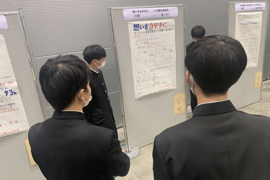 具体的には2年生を40班に分け、ペアとなる企業・団体等を各班ごとに決定。生徒たちは4ヶ月間、企業・団体等とコミュニケーションを図りながら、12月の探究成果発表会に向けて課題探究に取り組まれました。