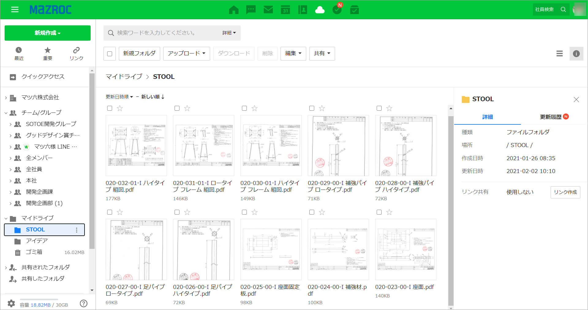 営業部門では、会議資料や議事録をグループフォルダにアップすることで、ペーパーレス化を促進しています。