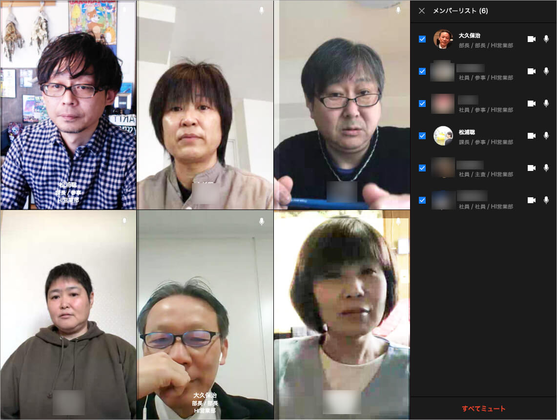 ビデオ通話による会議も頻繁に行われています。一般的なWeb会議システムのように事前にURLを発行するような手間がかからないので、必要に応じてすぐに開催できるのが便利に感じています。