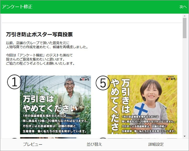 デザインの候補が複数あるときには、社員からの意見を吸収するためにアンケート機能を活用し、素早く収集および集計できるようになりました。