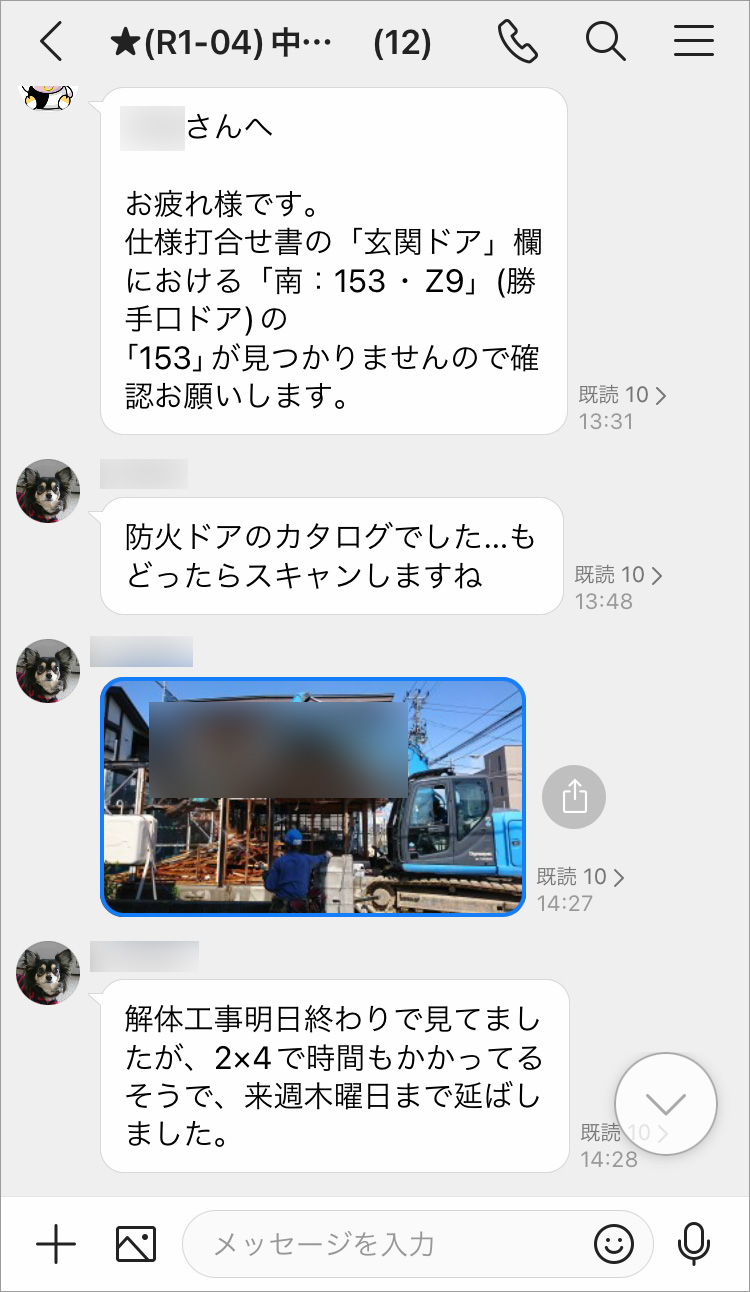 【グループトーク】施工現場単位のグループトークで情報を整理、報連相も密に