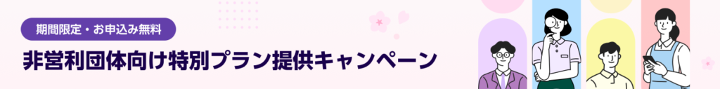 通常フリープラン(容量5GB・使用最大人数100名)から拡張した、非営利団体向け 特別プラン(容量50GB・使用最大人数1000名)をご用意しました。