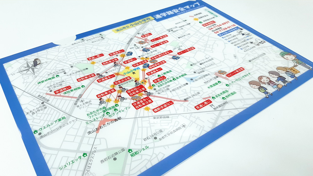 地区委員を通じて集めていた通学路上の危険箇所に関する情報についても、アンケートでPTA本部に直接報告してもらうようにしました。寄せられた20カ所近くの危険箇所を落とし込んだ通学路マップを掲示板にアップして注意を喚起しています。