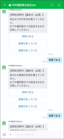 PCメールで送られた安否確認の通知は建設現場では閲覧できませんが、訓練ではスマホにトークで通知されたので即答することができました。