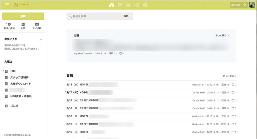 以前は、それぞれのホテルの日報をイントラネット内で確認し、情報共有は別のツールを使っていたのですが、LINE WORKSに一元化できたので、効率的だと思います。