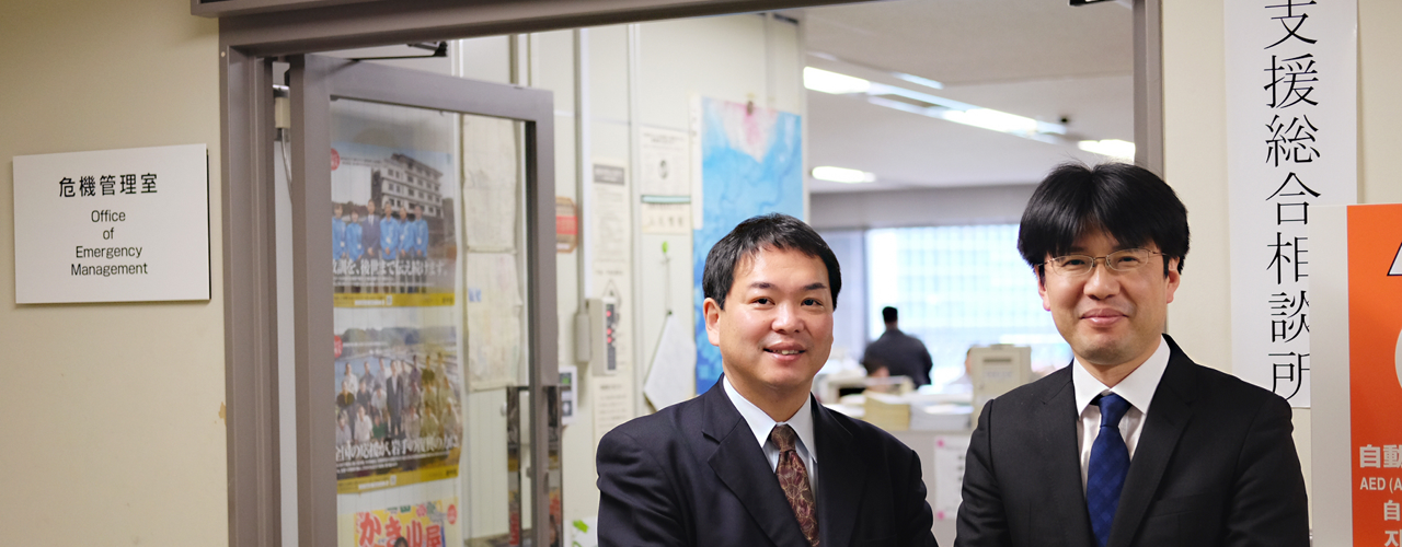 各機関と連携協定を締結したことで、NICTが提供する※災害状況要約システム「D-SUMM」や、※災害SNS情報分析システム「DISAANA」をさらに有効活用できるようになりました。今後はこれらのシステムを通じて全体的な被災状況を把握しつつ、キーパーソン同士がLINE WORKSで緻密な連携を図ることになります。一方、市民の皆様に対してはLINE@でさまざまな情報を発信していく予定です。今後、防災訓練などにおいてこれらの情報ツールを活用・検証し、災害時における重要かつ有効な情報の共有・発信・収集をしてまいりたいと考えております。