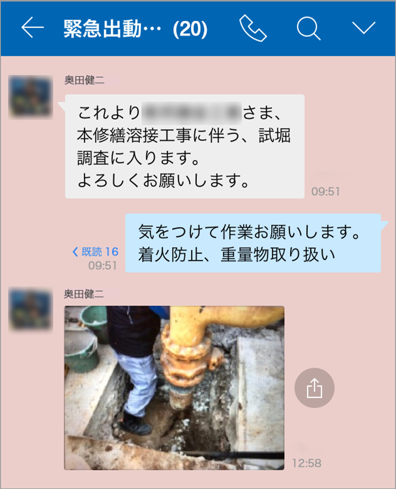 例えば、100戸近くあるマンションでガス漏れが起きた場合など、どれだけ情報共有を素早くできるかで対応内容が変わってきますし、初動までの判断が速いほど被害の拡大を防げます。写真とトークで現場状況をリアルタイムに関係者に一斉共有することで、次の行動への判断や指示、実行が速やかに行われるようになりました。