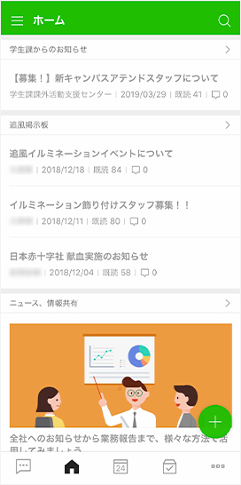 大学側が発信する各種お知らせをLINE WORKSのホームにも掲示することで、閲覧したクラス代表を通じて重要な情報が広く学生に伝わるようになりました。本学のキャンパスでは年末にイルミネーションイベントを実施しており、学友会運営委員会がその飾り付けのサポートをトークで呼びかけたところ、多数の学生が参加してくれました。お知らせに対して反応が薄かったポータルサイトへの掲示の頃と比べると、情報が効果的に周知・伝達されていることを実感しています。