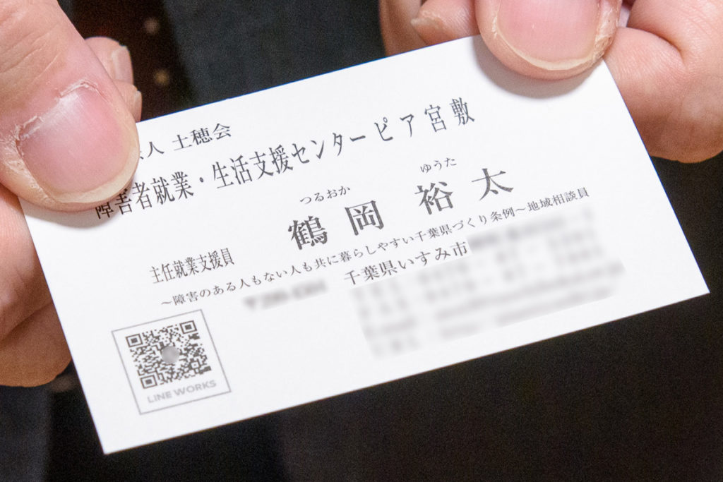 求職者のLINEとつながる際には、職員の名刺に印刷されたLINE WORKS IDのQRコードを読み込んでいただくことで簡単に友だち登録ができます。遠方にお住まいの方や、長期的なサポートを要するときなど、求職者のケースに応じてご提案しております。