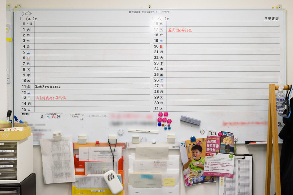 カレンダー機能も毎日のように活用しています。外出先でもリアルタイムで入力したり、自分やメンバーの予定を確認したりすることができるので、求職者や関係機関からの問い合わせにもすぐに答えることができています。今までは事務所のホワイトボードでスケジュール管理をしていましたが、カレンダー機能を使いはじめて2か月ほどでホワイトボードへの書き込みがなくなり、自然に完全移行できました。
