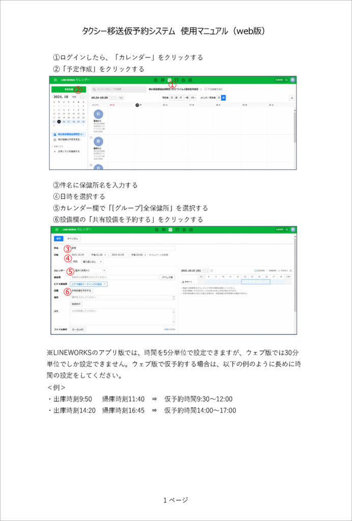 *本事例はLINE WORKSのカレンダー機能にある「共有設備」を主に活用しています。共有設備についてはこちらを参考ください。