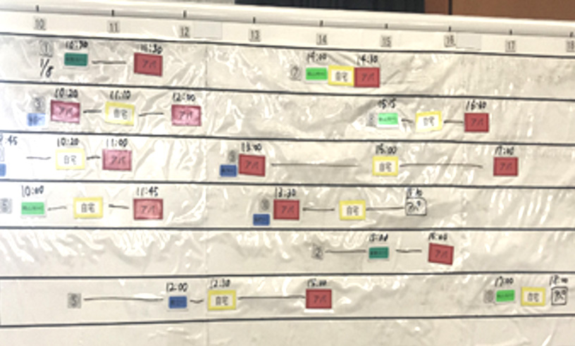 また、患者さんの容体急変などに対応するため、移送には保健所の職員が同行することになっています。しかし第5波の感染拡大時にはその人員を割くことが困難となり、保健所職員に代わって同行する看護師3名を県が手配。その看護師の運用もホワイトボードで管理していたため、車両と同様にダブルブッキングをするおそれがありました。