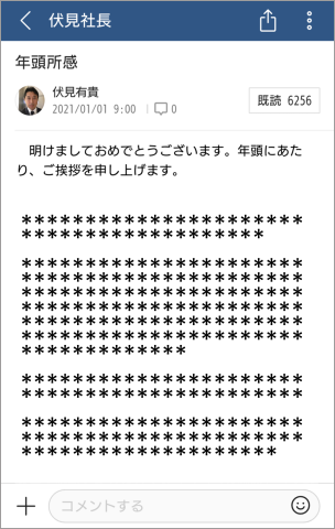 グループトークをメインに部門内、部門間の情報共有に活用しています。事務局では掲示板機能を多用しており、社長や各本部長のメッセージを定期的に配信しています。掲示板では、ほかにもグループ内で表彰されたスタッフの取り組みや、当社の施設を利用されたお客様の声をタイムリーに配信し、グループ全体で情報共有しています。お客様から苦言があったときにも迅速に対処できるようになり、サービス品質の向上につながっています。