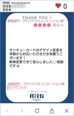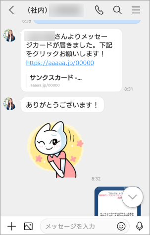 作成されたサンキューカードはタイムラグが生じることなくすぐに相手に届く。