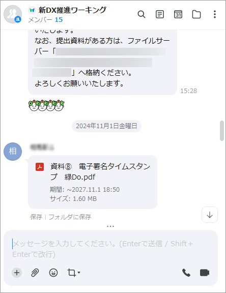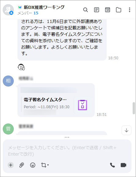 利用が事務部門全体に広がってからはだれもがチャットでやり取りする方がずっと効率的だと気づき、普段の業務連絡はもちろん、会議資料の共有などにも活用しています。