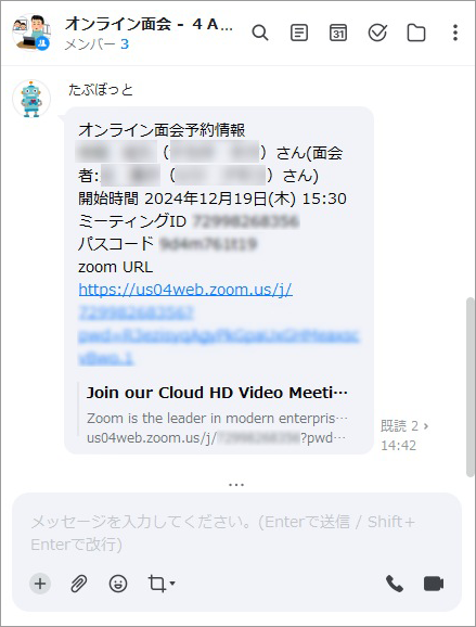 ・オンライン面会の申し込みがあったことをBotが担当者のグループに自動通知