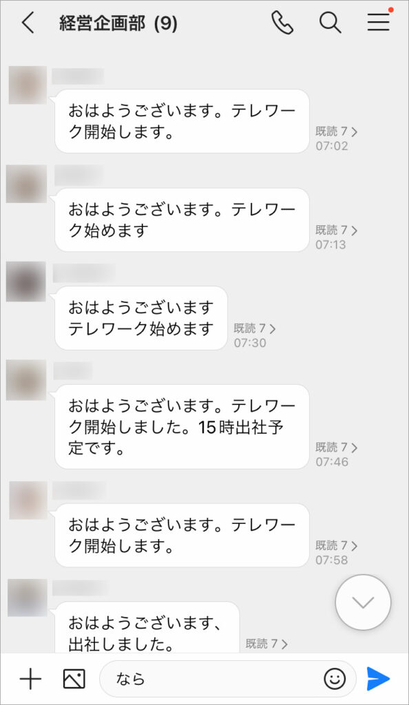 また、トークだと対面や電話では遠慮しがちな相談も気軽にできることもあって、社員間の距離が近くなったように感じます。コロナ禍となってからは、リモートワークをする社員が勤務の開始・終了を報告するための手段としても活用しています。