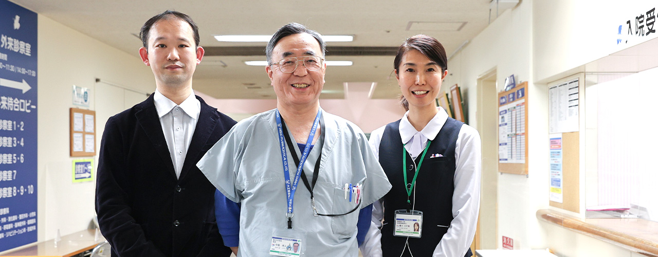 1985年に開設された当院は地域に根差した医療を提供し、二次救急指定医療機関にも指定されています。内科・外科・消化器科・整形外科・小児科・皮膚科・循環器科・糖尿病外来・乳腺外科・禁煙外来・脳神経外科・リハビリテーション科の一般診療に加え、人間ドック、生活習慣病等の各種健診、企業健診・産業医、学校医活動などの予防医療にも力を入れています。