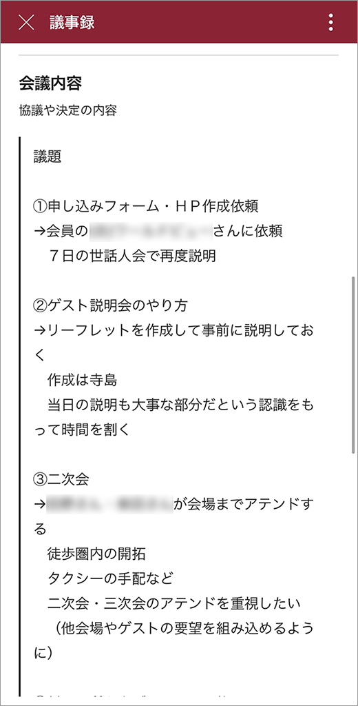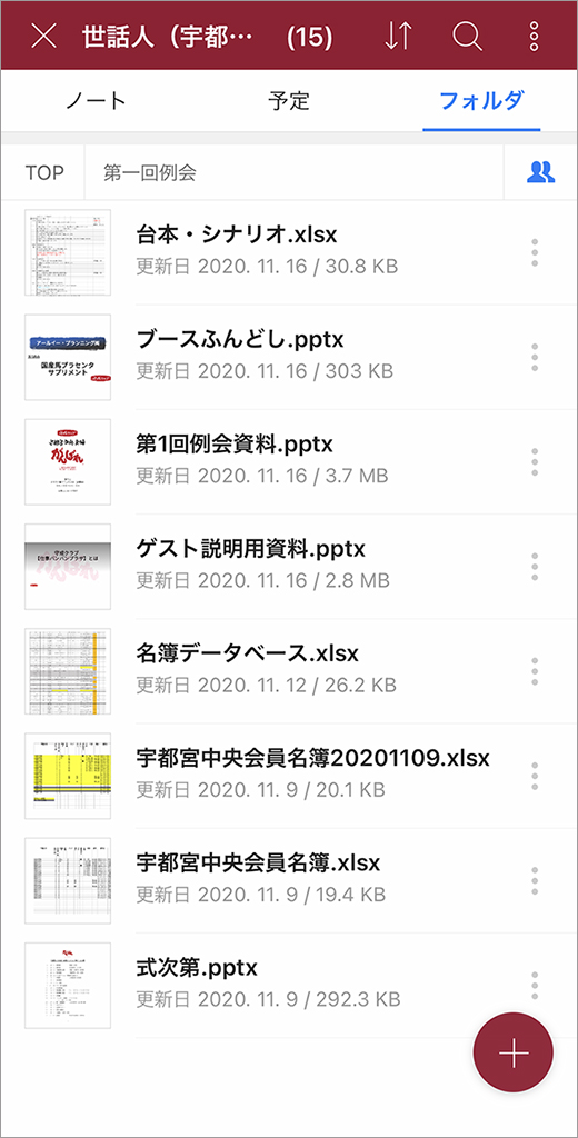 事務局では例会の名簿や式の進行台本などの資料を、「世話人」と呼ばれる運営メンバーと共有しています。LINEやメールを利用しているときは過去のスレッドまで遡る手間もあり、「もう1回送って」と頼まれることがよくありました。
