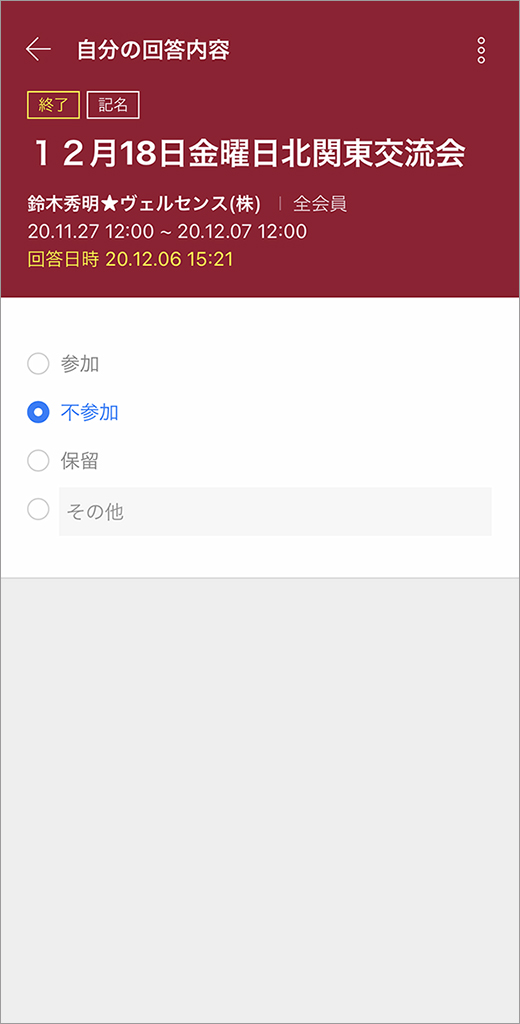 イベントの出欠状況をアンケートで確認