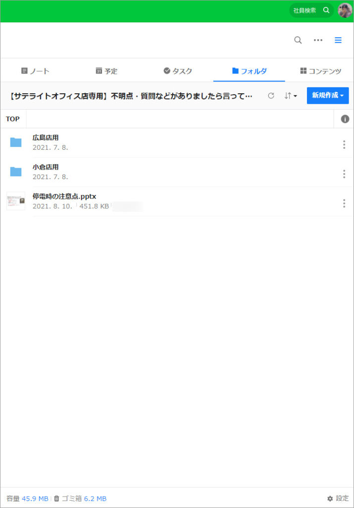 トークで連絡をし合うだけではなく、業務マニュアルなどはノートやフォルダにアップして、メンバーがいつでも閲覧できるようにしています。