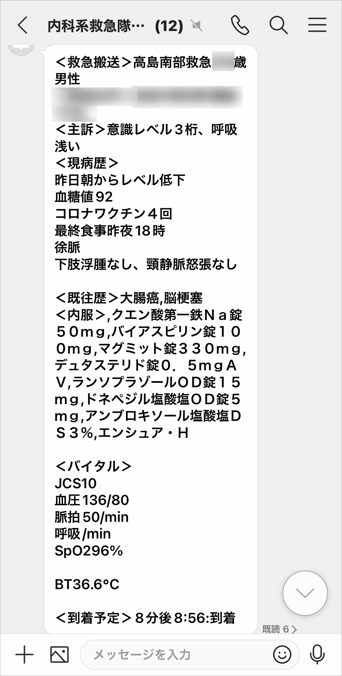 消防本部からの要請による急患の受け入れが決まると、事務担当から救急対応チームのリーダーにほどなく患者さんが到着することを伝えます。以前は、搬送中の救急隊から患者さんに関する情報が救急外来に電話で伝えられ、事務担当からその内容を救急対応チームに電話で伝達していました。救急隊からは追加情報を伝える電話が2~3回あるのが常で、その都度救急対応チームに伝達しなければなりませんでしたが、NSER mobileを運用するようになってからは、救急隊からの情報がテキストや画像で「外科系」と「内科系」それぞれ必要な関係スタッフが入っているLINE WORKSのグループに瞬時に送信されるので、救急外来がわざわざ伝達する必要がなくなりました