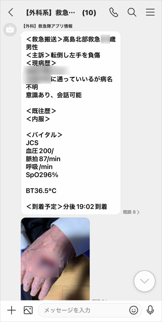 以前は「心室性期外収縮が1分に5回の割合で出ています」などと口頭で行っていた説明も、今は救急車内のモニターに表示される心電図データの写真を撮ってもらえば確実に伝わります。同様に患者さんの怪我の様子なども写真で把握できるようになりました