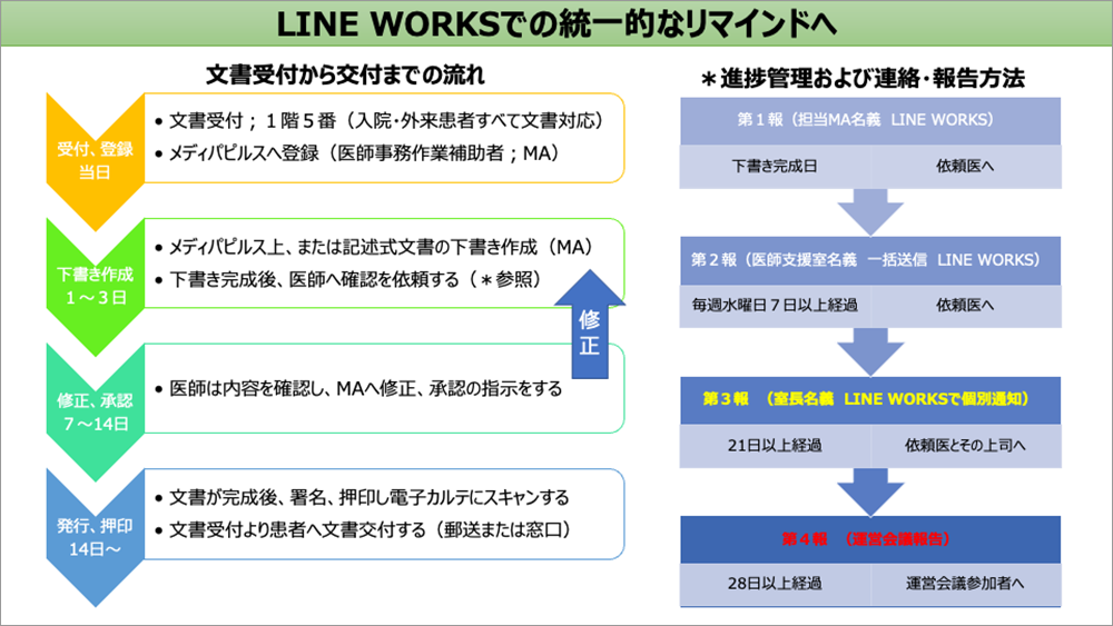 LINE WORKSのBotを活用して、診断書の作成を促す通知を自動的に発信する仕組みをつくられたそうですね。