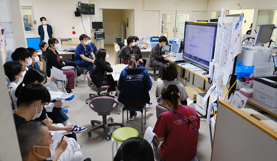 救急科の入院患者さんの容体は刻々と変わるため、毎朝のカンファレンスで医療職員が最新の状況を共有しなければなりません。そのため以前は勤務時間外でもカンファレンスに参加することがありましたが、医療従事者の時間外労働の上限が設けられてからはそれが難しくなりました。