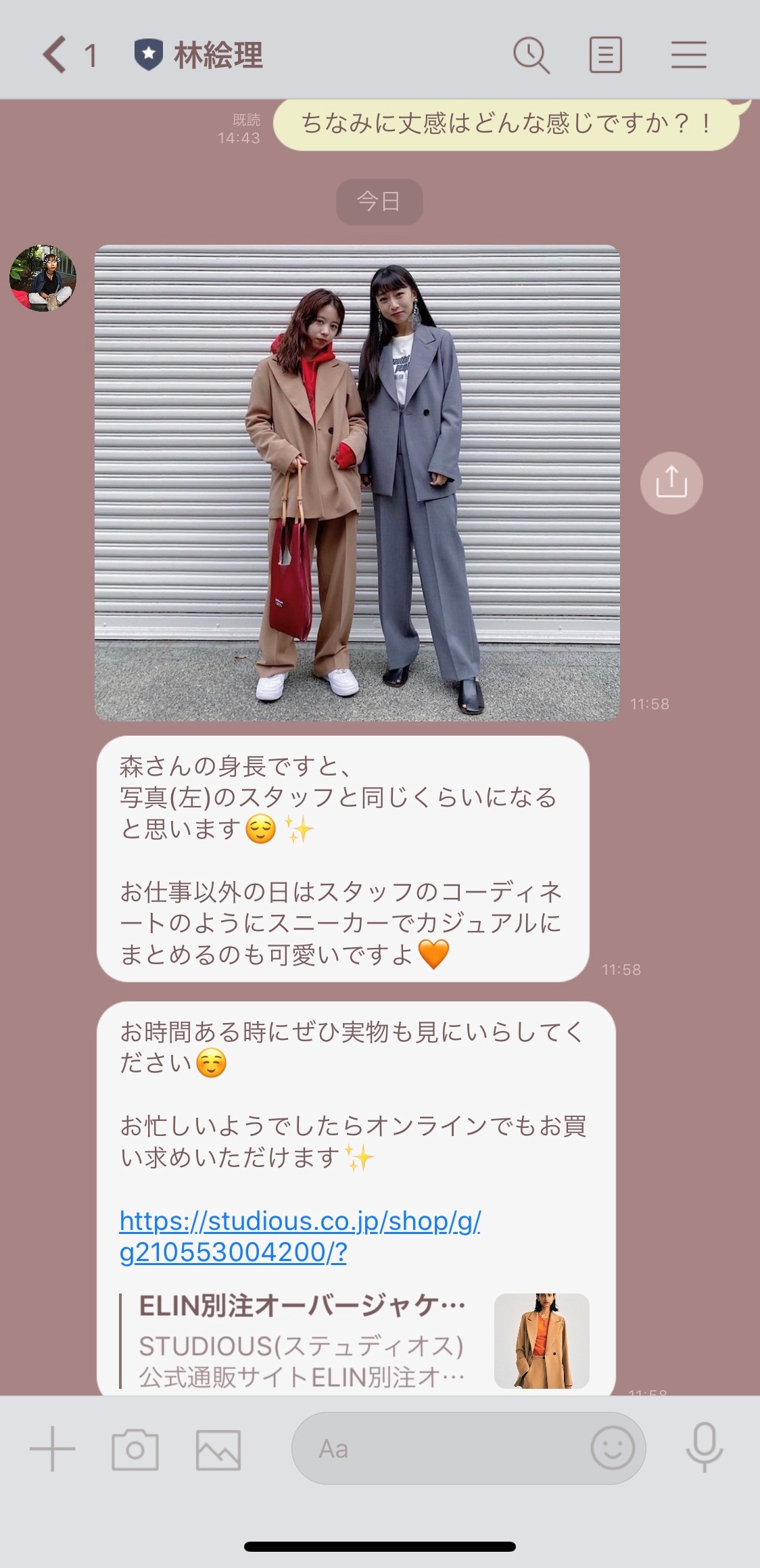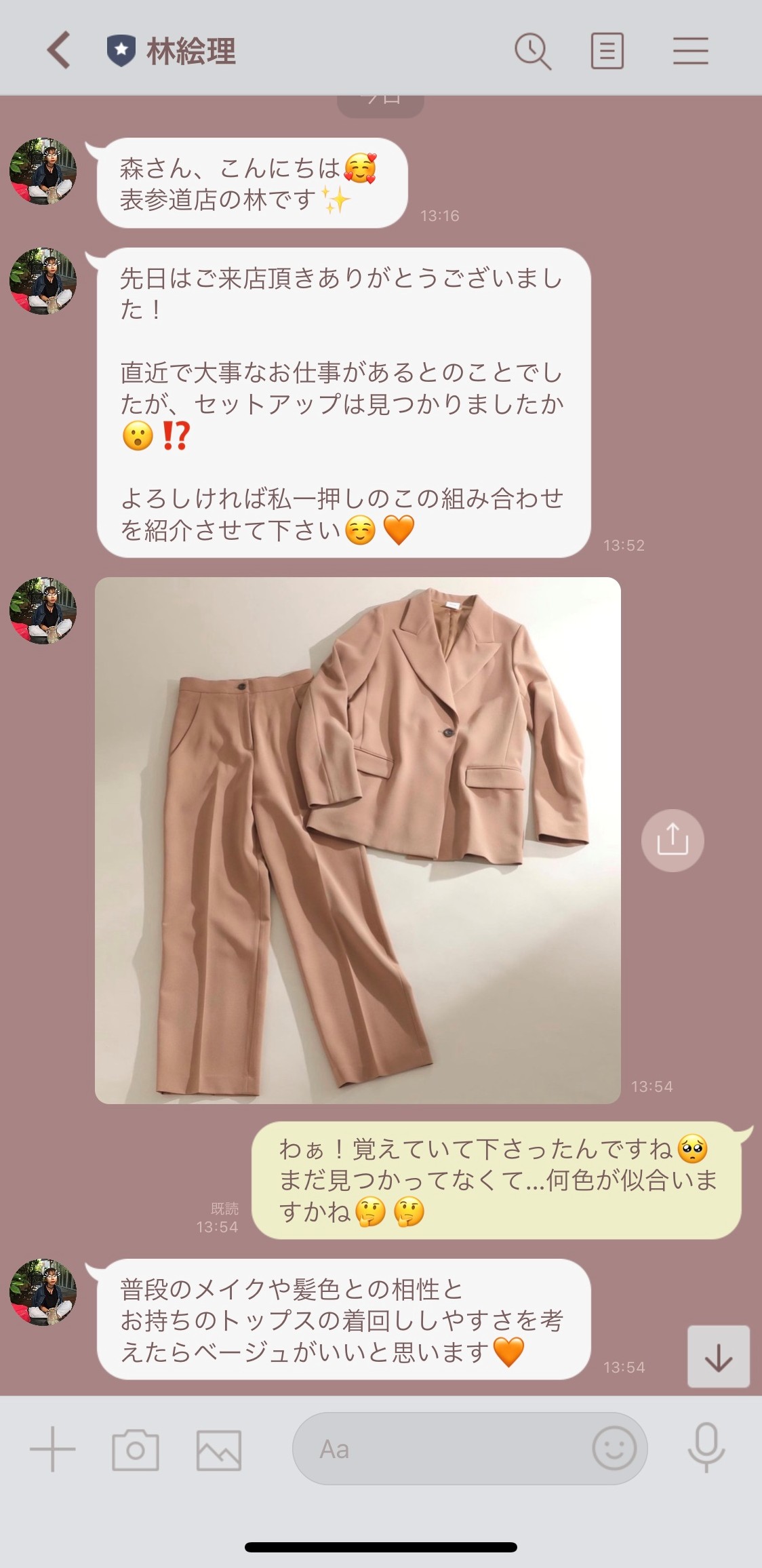 販売員と顧客とのLINE WORKSでの会話例(実際のやりとりではない)