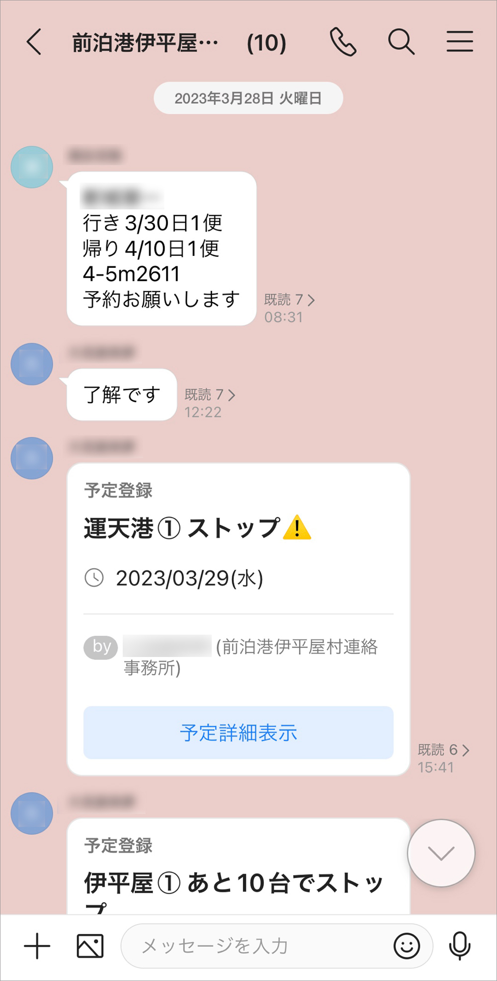 - 島民から受けたフェリーの予約依頼をトークで共有し、言い忘れや伝達ミスを防止